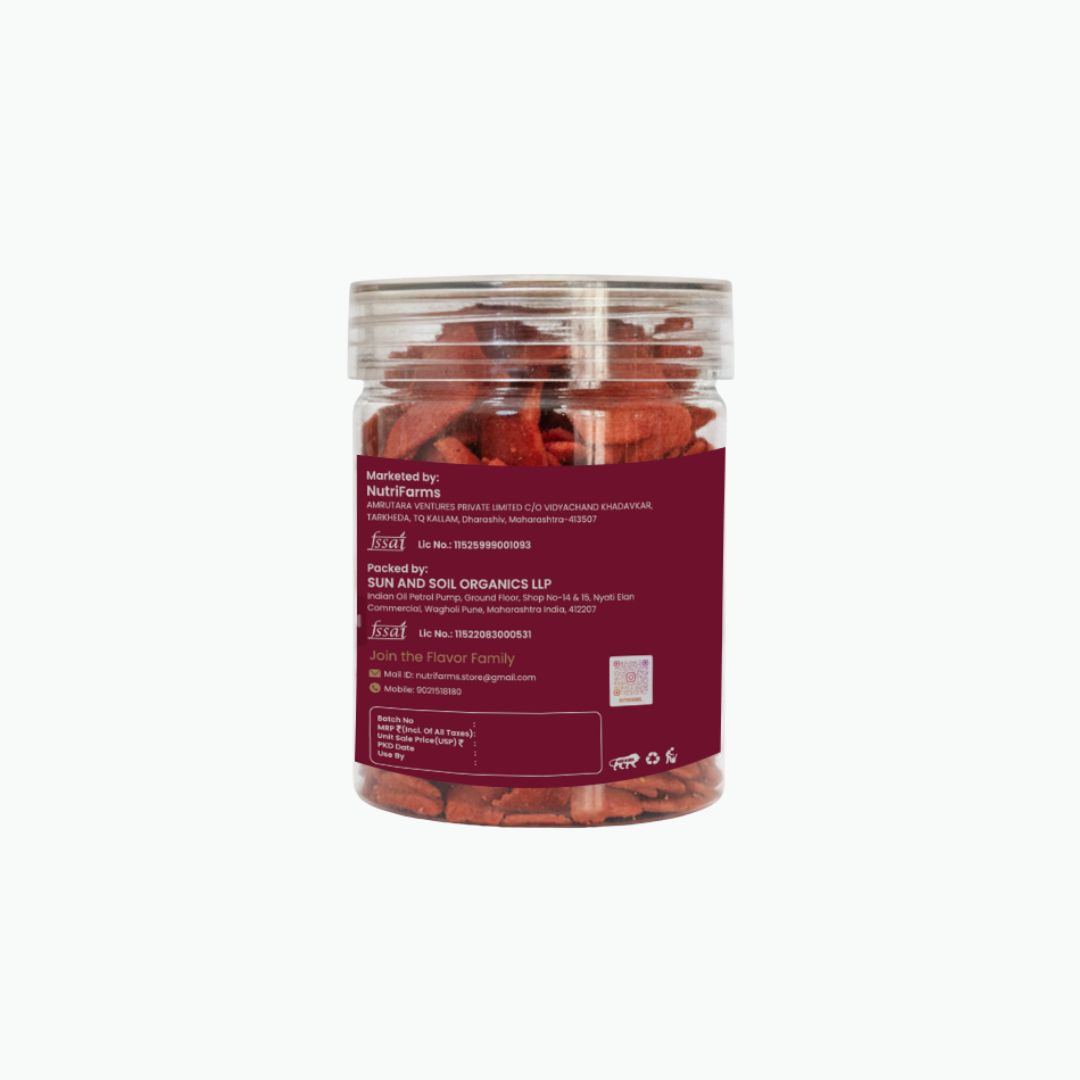 Enjoy the crunchy, earthy sweetness of farm-fresh roasted Beetroot Chips, a nutrient-rich alternative to fried snacks. These guilt-free treats are packed with fiber and antioxidants, containing no preservatives or artificial flavors.