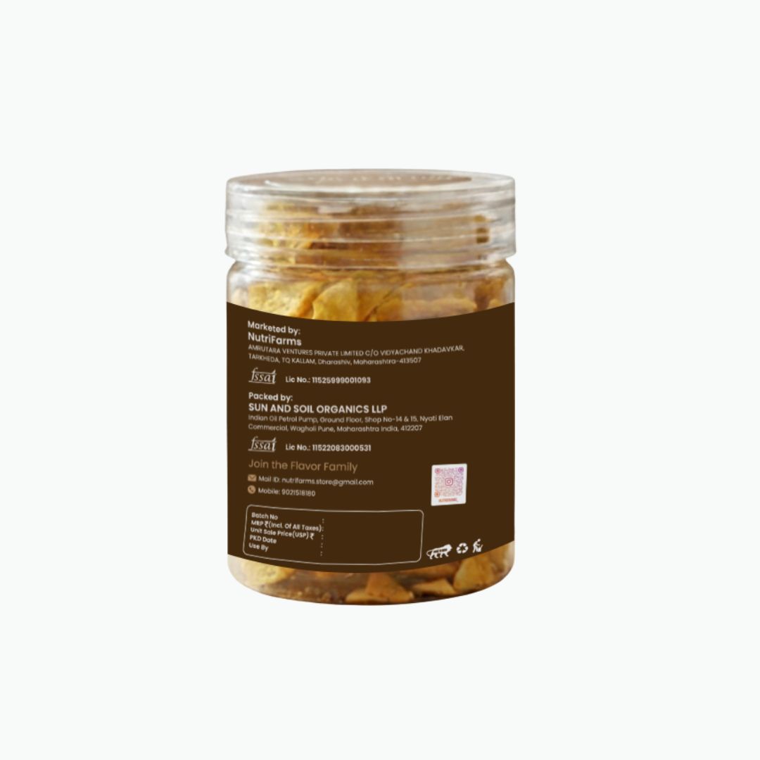 Jawar Chips by Nutrifarms are a tasty and guilt-free snacking option made from wholesome jowar. Light, crunchy, and well-seasoned, they strike the right balance between flavor and nutrition. A great alternative to regular chips, these are perfect for anyone looking for a healthier snack without compromising on taste.